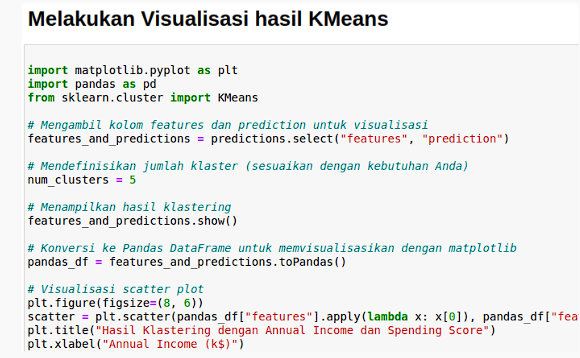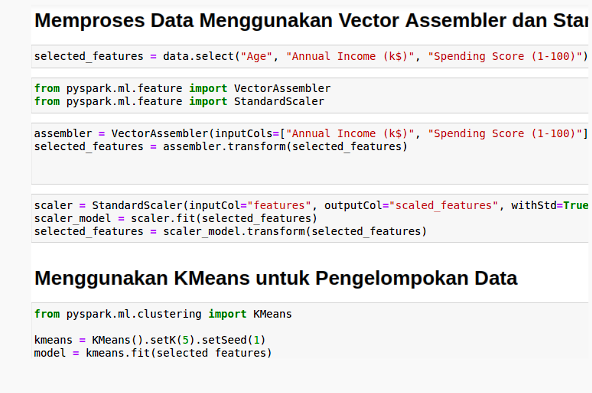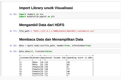 This project is the final project of the big data and analytics course. this project performs data analysis in a big data environment. The analysis carried out is to determine customer segmentation using Kmeans Clustering. The dataset is stored in HDFS and the analysis process is carried out on Jupyter Notebook. Customer segmentation is done to determine the right sales strategy to several categories of customers